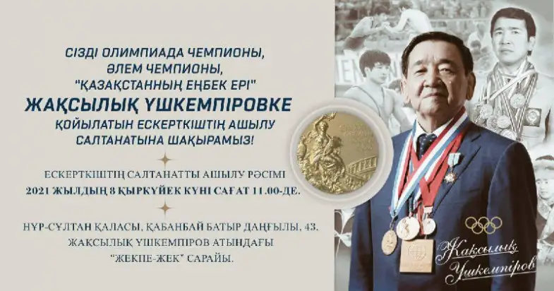Алматы, NEGE. Олимпиада чемпионы, Әлем чемпионы, “Қазақстанның Еңбек Ері” Жақсылық Үшкемпіровке қойылатын ескерткіштің ашылуына шақырамыз.