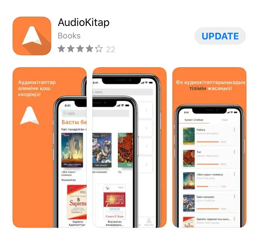 «Қазақ тіліндегі аудиокітаптар топтамасын AppStore, PalyMarket-тегі AudioKitap қосымшасынан табуға болады. Мұнда қазірдің өзінде 500-ден аса шығарманың дыбысталған нұсқасы бар. «Аудио-кітап қатары толығып, жаңара береді. Дыбыстауға кітап/шығарма ұсыныңыздар. Ең жиі аталған кітаптарды бірінші кезекте жазып, саламыз», – деді Р. Кенжеханұлы.