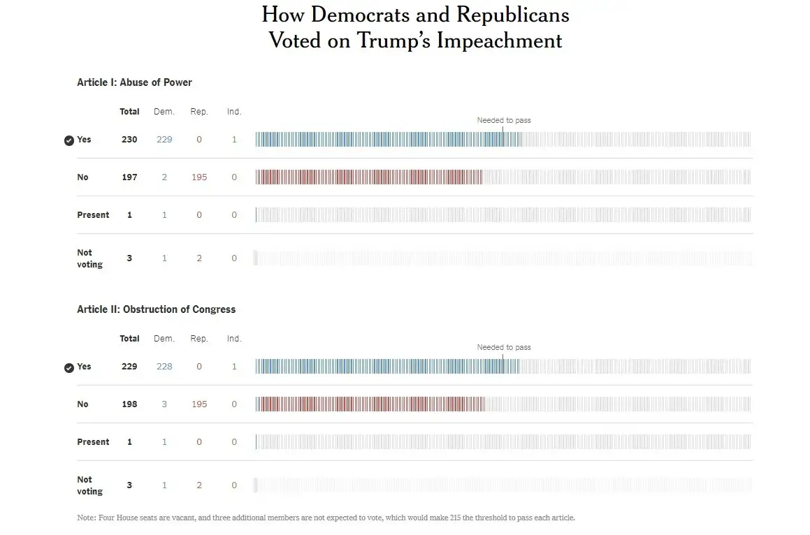 Сот Трампқа қарсы тағылған екі айыпты да қолдады. Дауыс берудің нәтижесі төмендегідей:
