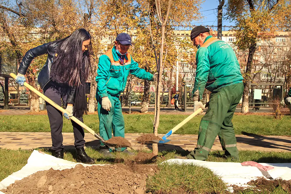Алматы, NEGE. Журналистер көшеттерді отырғызып, өздері суарды. Жасыл экономика Басқармасының мамандары жиналғандарға ағаштарды күту ережелерін сипаттайтын парақшалар таратты. Онда көшеттер арасында 4-5 метр қашықтықты сақтау, әр талға 60х60 см шамадағы шұңқыр қазу секілді негізгі нормалар көрсетілген. Өсімдік тіршілігінің жетілуіне қажетті ең басты алғышарт - молынан суару. Атап айтқанда, жылына - 72 реттен кем болмауы керек.