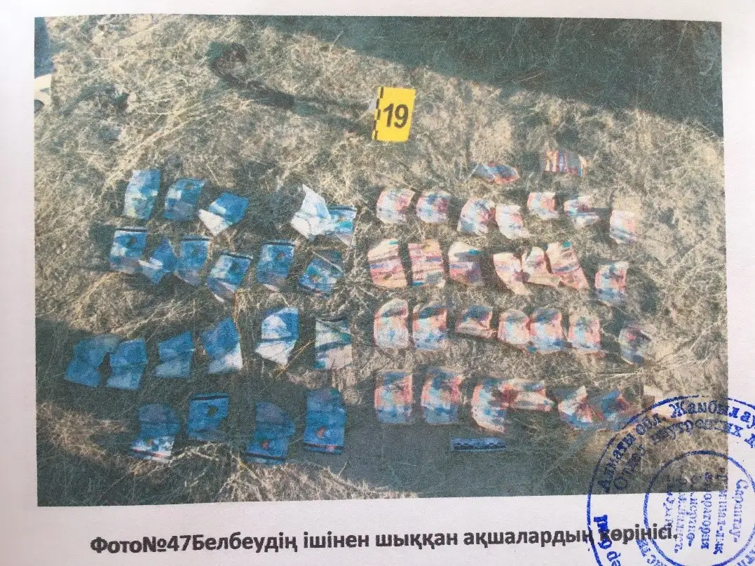 Өлі денелерді тінтіген қылмыскерлер бірінен шамамен жарты млн теңге, екіншісінен екі млн теңге атауып алады. Үшіншісінің белдігінде құпия қалтада бір млн теңгеге жуық ақша болған. Бірақ баскесерлер оны көрмей қалады. Оны кейін мәйітті зерттеген сот-медицина сарапшылары тауып алған.