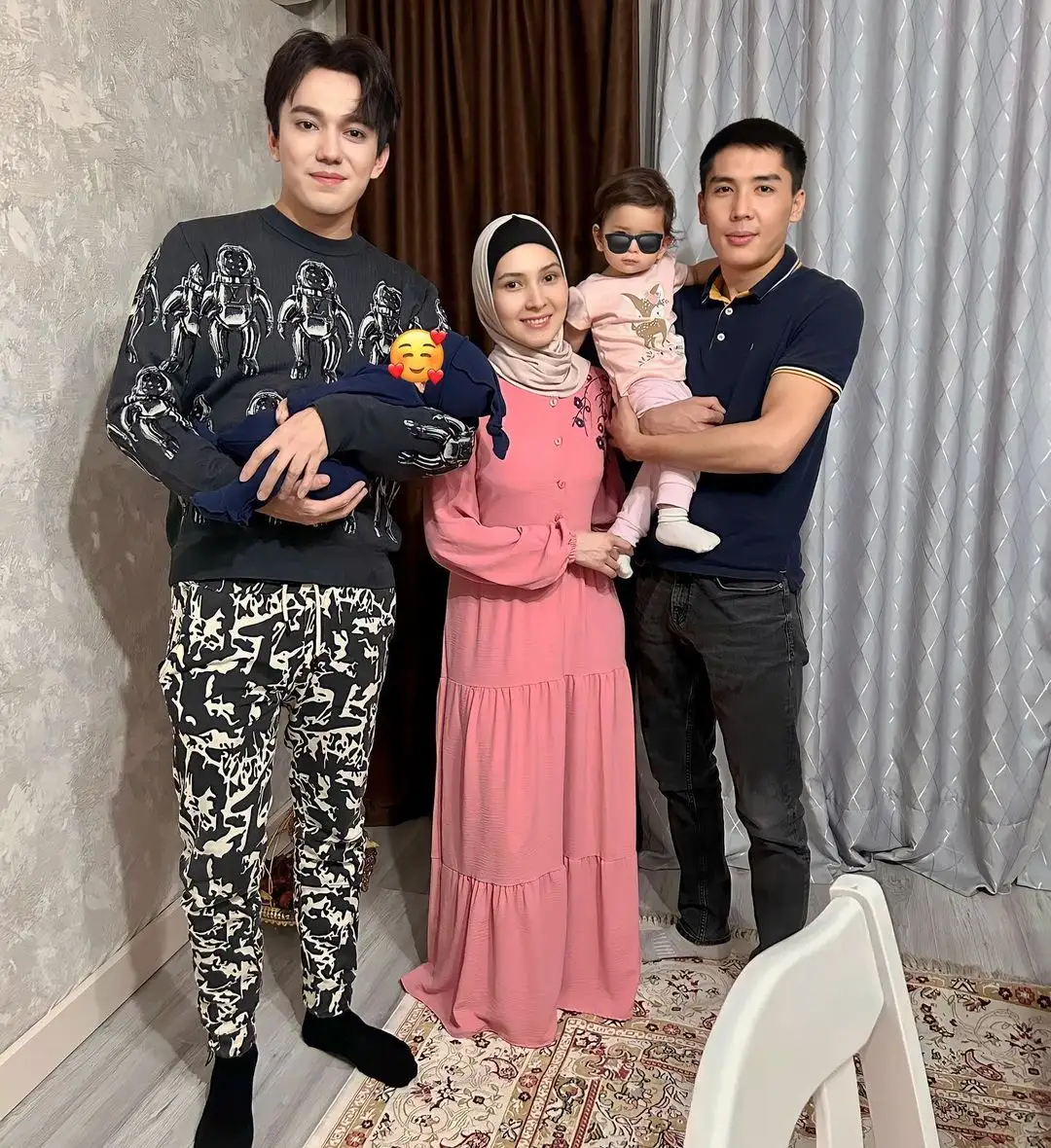 "Баламыздын кіндік әкесімен алғашқы сурет. Біздін Дималёктің кіндік әкесіне көп рахмет. Димаш сияқты ел сыйлайтын жақсы, адал жан болсын", - деп жазды жұп.