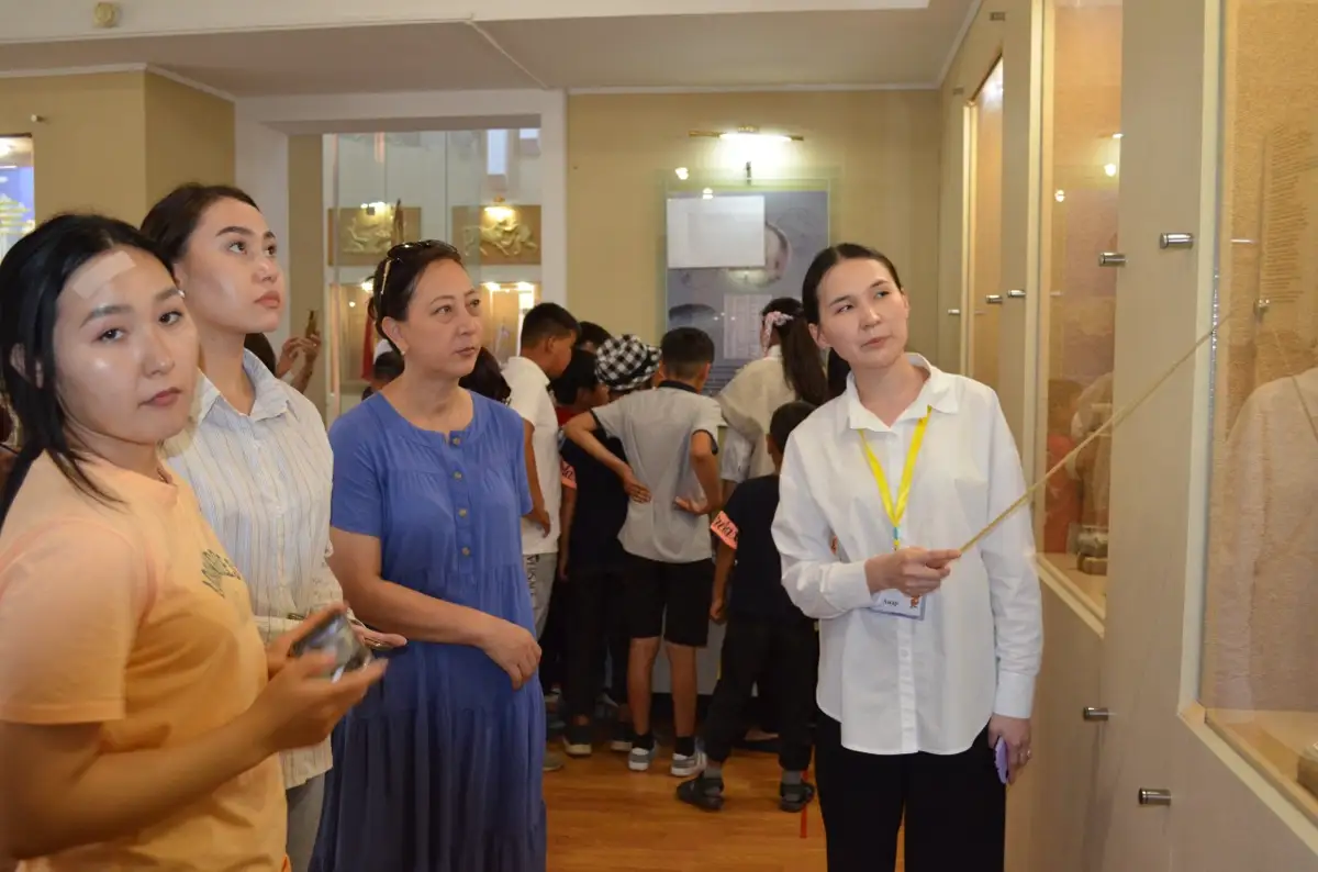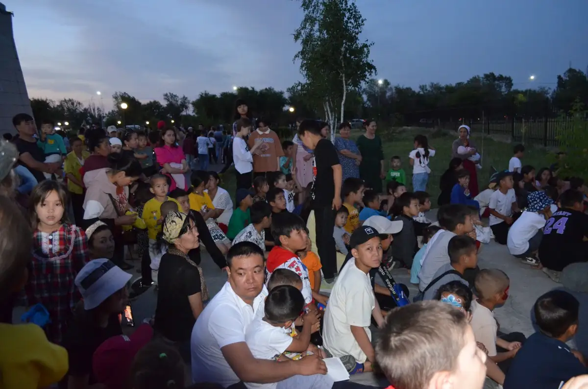 Музейдің жас қонақтары аспан астында құрылған сахнадан «Күлтегін», «Мұзбалақ» мультфильмдерін тамашалады.