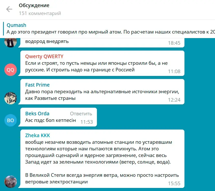 Қазақстандықтар әлеуметтік желілерде қазіргі заманда атом электр станцияларын салудың еш мәні жоқ, өйткені энергия алудың бұл жолы ескірген деп жазуда. Бұл – фактілермен манипуляция жасау.