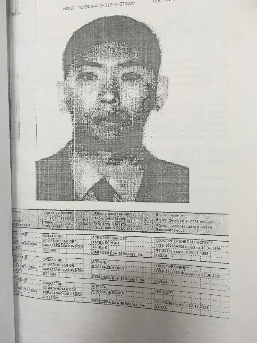 Бірнеше байланысты зерттеп, 2007 жылдың 7 ақпанында Сәкен Балғынбаевты (1971 жылы туған) ұстайды. Күдіктіден «Макаров» тапаншасы 7 оғымен табылған. Үйін тінтігенде 1800 доллар қолма-қол ақша шығады.