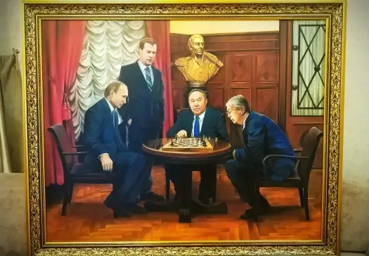 Ал мына картинада қос елдің төрт президенті бір-ақ тұр. Сатып алушы қайсысын таңдаймын десе де, тақиясына тар емес. Сондықтан, біздіңше, Әрсеннің еңбегі әкімнің портретінен қалай болғанда қымбат бағалануы керек-ақ. Әйтпесе, ертең «Екеуі бірдей жүріп Бақауовқа татымады» дейтін әңгіме шықпасына кім кепіл?!