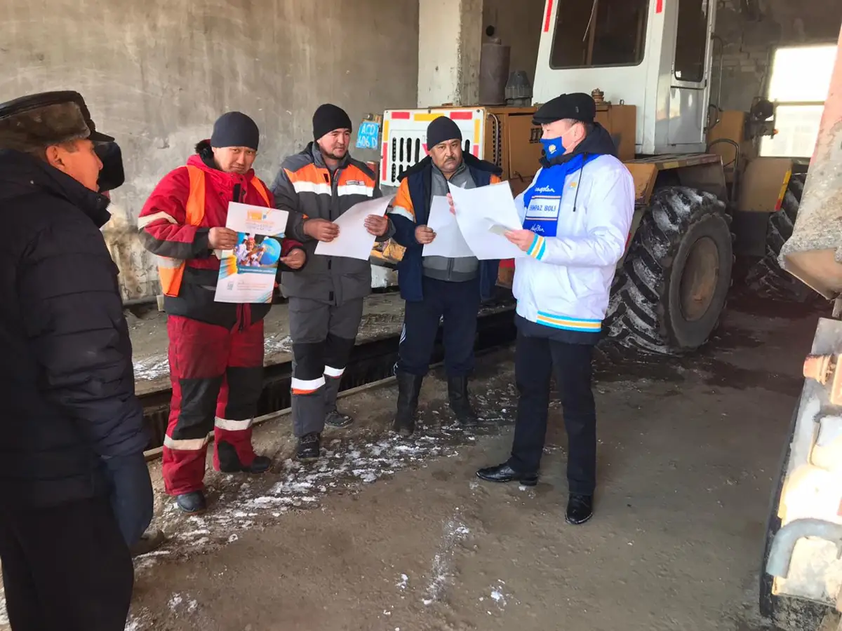 Хромтау қаласында орналасқан «Қазавтожол» ҰК АҚ-на қарасты Жол-пайдалану пунктінің жұмысшыларымен экспромт-кездесу өткізген аудандық мәслихат депутаттығына үміткер Жантас Нұрымов «Nur Otan» партиясының сайлауалды бағдарламасындағы облысты дамытуға арналған 7 басым бағыт туралы айтып берді.