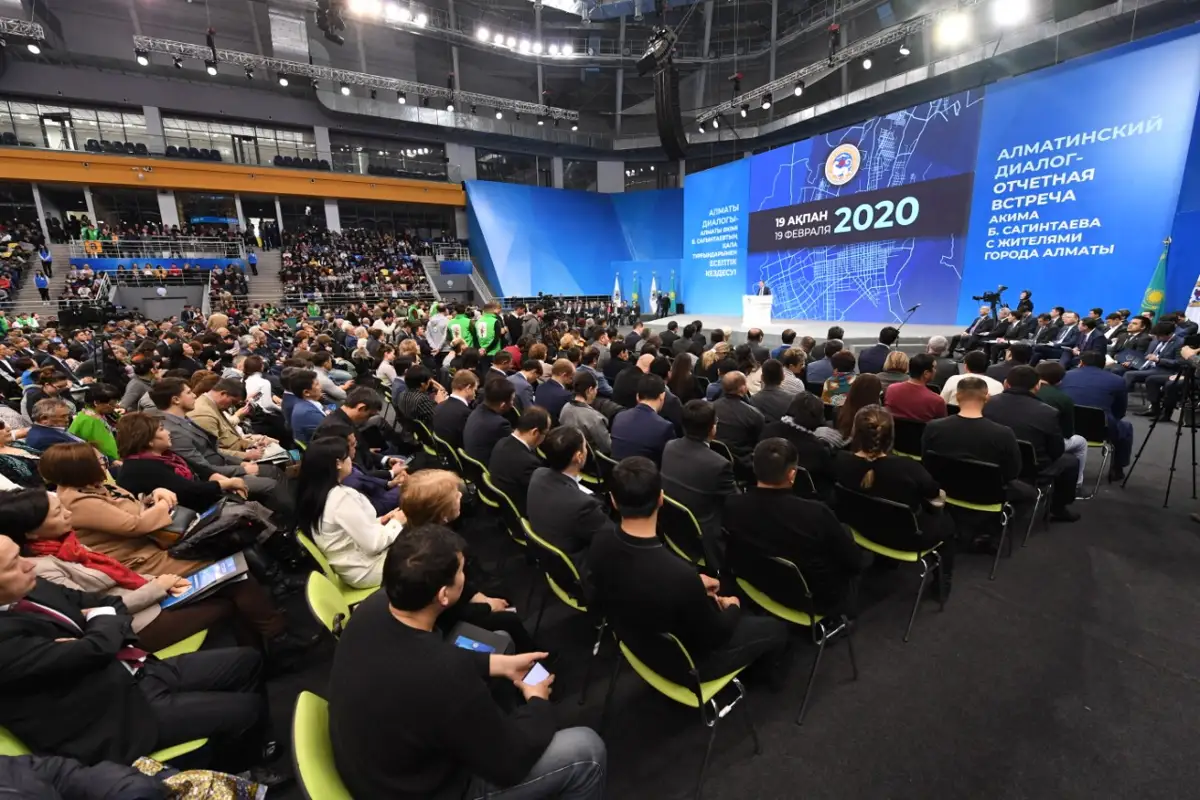 Алматы қаласының әкімі Бақытжан Сағынтаев шаһар тұрғындарына есеп беруде. Сағынтаев бұрынғы әкімдер сияқты баяндама жасаған жоқ. Ол қалада атқарылған шаруаларды қысқа да нұсқа айтып берді.